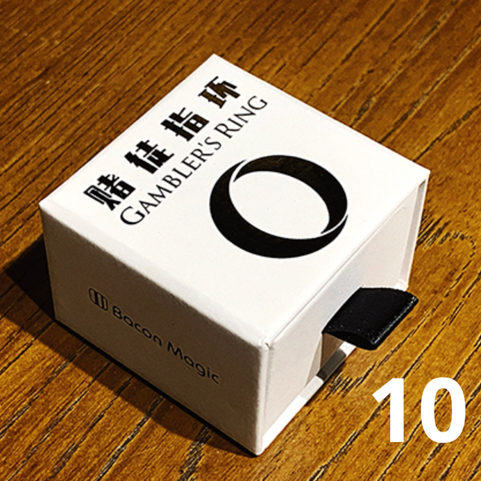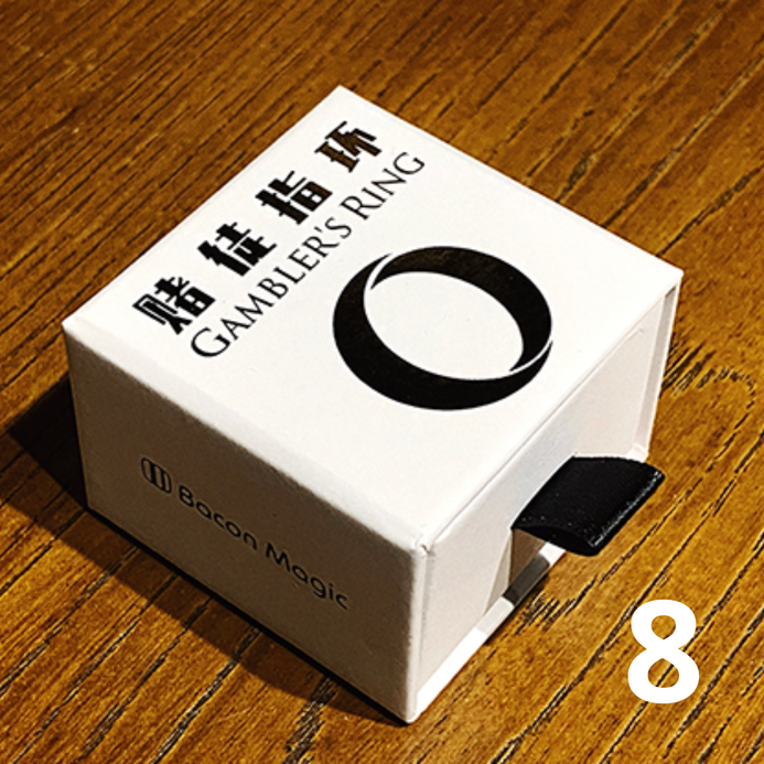 Gambler's Ring conçu par Milo, produit par Bacon Magic. C'est un anneau puissant qui peut être utilisé pour marquer et jeter un coup d'œil sur une carte.