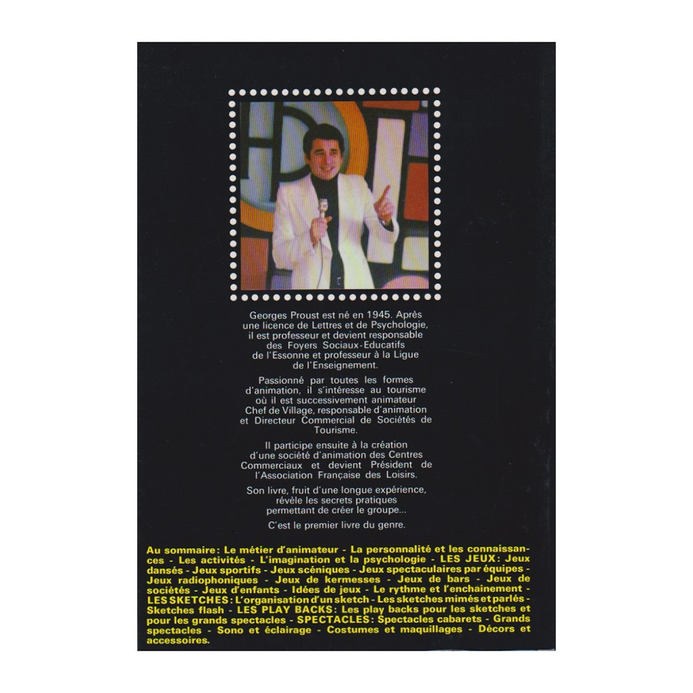 Bien qu'un seul livre ne puisse couvrir tous les aspects du sujet, Georges Proust a rassemblé les éléments les plus utiles de ses nombreuses expériences en animation (centres culturels, hôtels-clubs, villages de vacances, centres commerciaux).