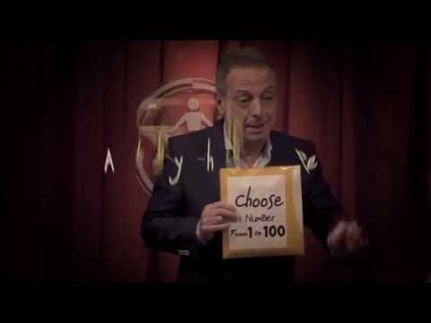Le magicien demande à un spectateur de monter sur scène. Supposons, dans cet exemple, qu'il s'appelle Tom. Une enveloppe en plastique jaune avec une grande étiquette est affichée, avec les mots imprimés : "Choisissez un nombre compris entre 1 et 100". Le magicien demande à Tom de désigner n'importe qui dans l'auditoire et lui demande de choisir un nombre. Il est écrit sur un post-it et collé sur la paume droite de Tom.