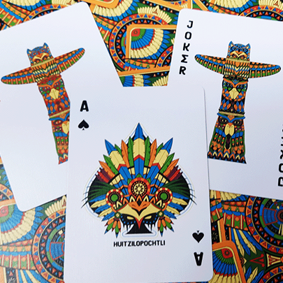 Ce jeu coloré et dessiné à la main illustre les anciennes traditions aztèques en ramenant leur passé au présent. Fait un ajout fantastique à n'importe quelle collection de cartes et ajoute un élément d'intérêt et de design à n'importe quel jeu de cartes.