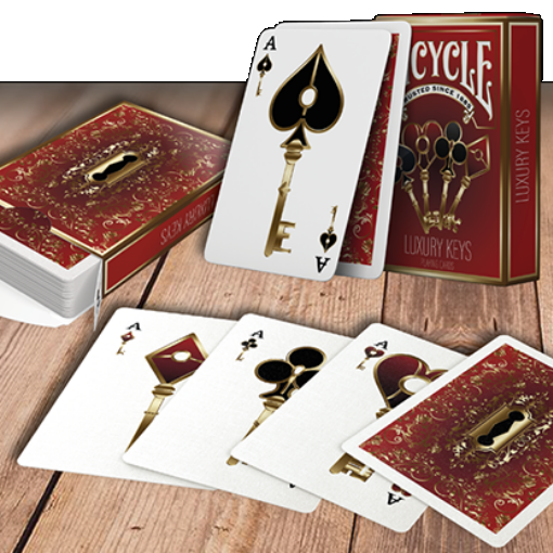 Inspiré de la légende du coffre magique, le deck Luxury Keys réinterprète le classique Bicycle avec un aspect élégant et luxueux plein de détails exclusifs.