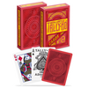L'étui et le dos de la carte sont tous deux estampés d'une véritable feuille de métal pour obtenir un éclat éblouissant. L'étui est doté d'une belle feuille rouge accrocheuse ainsi que d'une feuille d'or brillante, tandis que le dos des cartes est estampé d'une superbe feuille rouge pour créer le design classique Tally-Ho Circle Back.