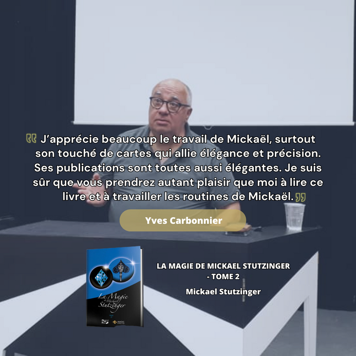 "J’apprécie beaucoup le travail de Mickaël, surtout son touché de cartes qui allie élégance et précision. Ses publications sont toutes aussi élégantes. Je suis sûr que vous prendrez autant plaisir que moi à lire ce livre et à travailler les routines de Mickaël." Yves Carbonnier