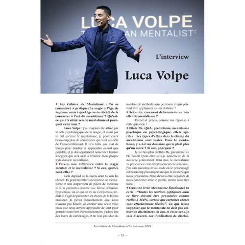- L'interview. Dans ce numéro 5 : Luca Volpe, le mentaliste-vedette italien, star de la télé transalpine
