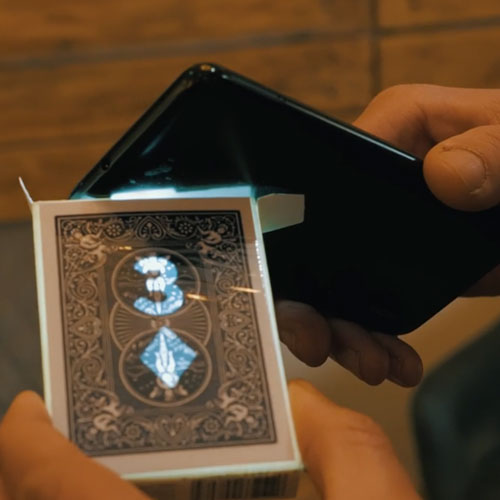 Camouflé dans un étui de cartes Bicycle ordinaire, Lightbox va vous permettre de révéler une carte choisie grâce à la lumière de n’importe quel smartphone ! Oui, vous avez bien lu, un faisceau de lumière sera votre révélation !
