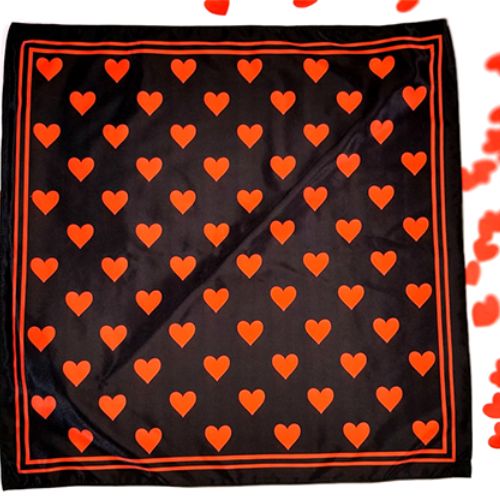 Fourni avec un bandana en satin fini à la main (environ 60 x 60 cm) et des confettis en forme de cœur coupés à la main (suffisamment pour de nombreuses représentations).