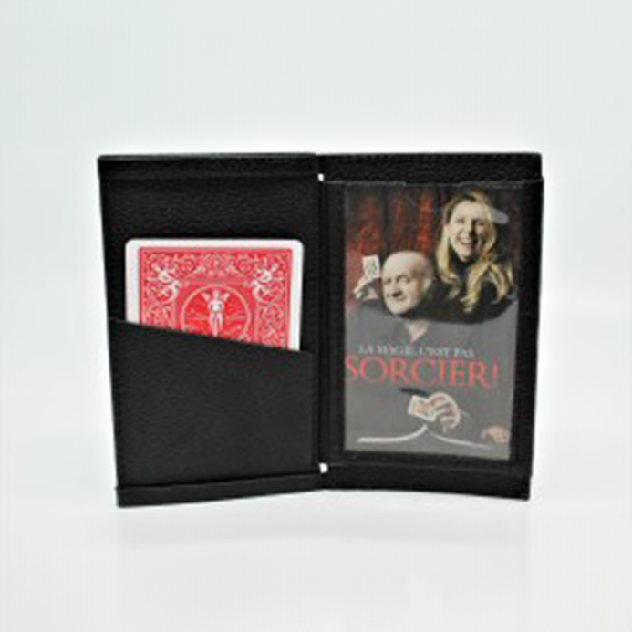 Ce classique de la magie revient en version cuir, offrant un format porte-cartes d'apparence anodine. En réalité, c'est un "Himber Wallet" pour les échanges, doté d'une touche révolutionnaire signée Duvivier, qui permet un examen détaillé de l'accessoire.