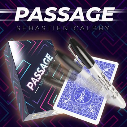 Après Offset, Manivelle, Majesty, voici un nouvel effet incompréhensible ! « Passage » est un bijou qui va vous permettre de faire traverser un objet long tels qu’un marqueur, un stylo, une paille, un Mikado, au travers une carte à jouer Bicycle, et ce d'une façon originale et impossible.