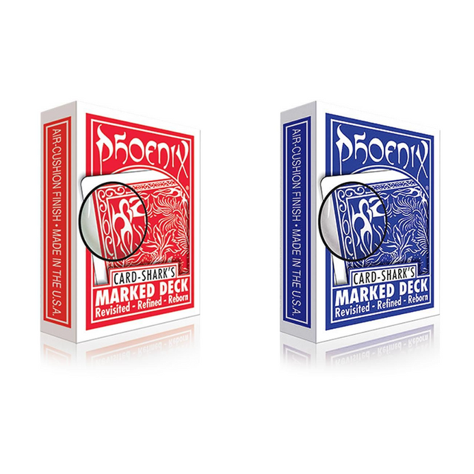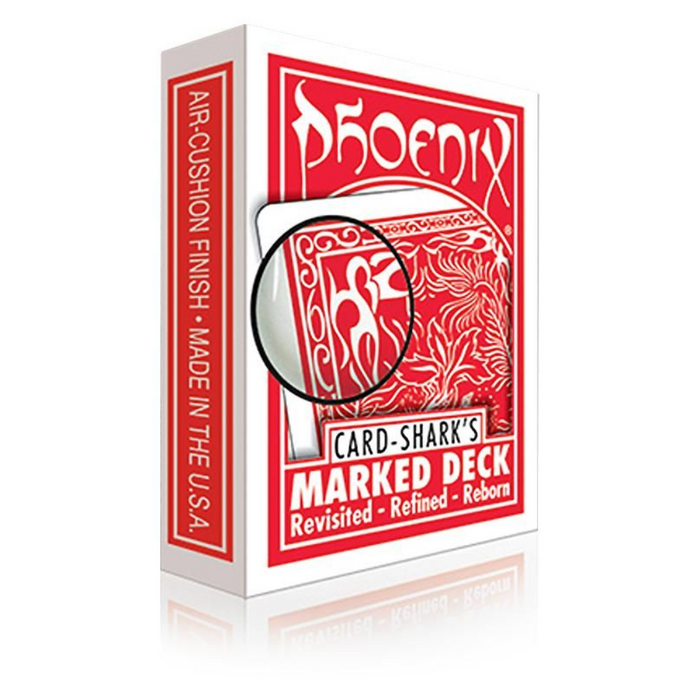 Lorsque nous avons conçu le Phoenix Deck, le jeu de cartes marquées a été conçu en premier, sans AUCUN compromis sur le design et l'emplacement des marques. (La seule différence par rapport à un jeu Phoenix standard : nous avons supprimé les marques, grâce à une « ingénierie inverse »). Croyez-le ou non : nous avons DOUBLÉ le nombre d'emplacements de marques, rendant ce jeu parfait pour les magiciens gauchers comme pour les droitiers. De plus, nous avons également imprimé un jeu Phoenix Marked Deck à dos rouge !
