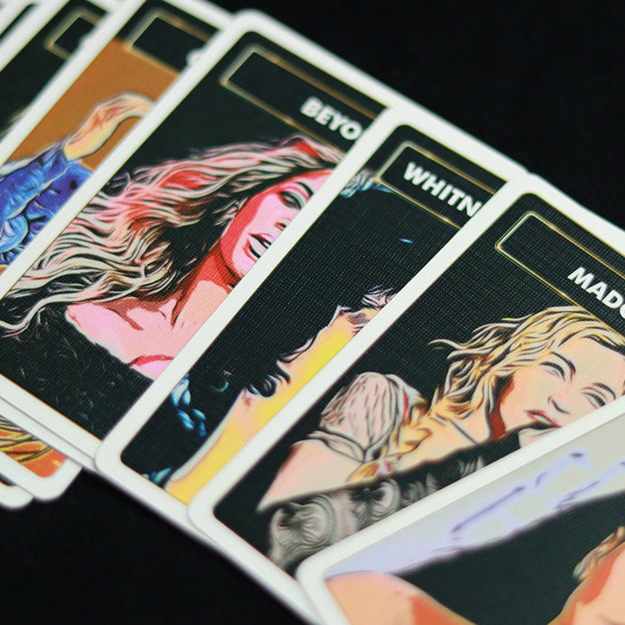 Avec Portraits, il n’est ici pas question de proposer à vos spectateurs des tours de cartes avec un jeu traditionnel incluant Piques, Cœurs, Carreaux et Trèfles. Les 52 cartes représentent des célébrités connues de tous, qu’elles soient issues du monde du sport, de la chanson, de la politique ou encore du cinéma. Actuelles ou plus anciennes, vivantes ou défuntes, hommes ou femmes, ces personnalités vont vous permettre de réaliser de vrais miracles devant votre public.