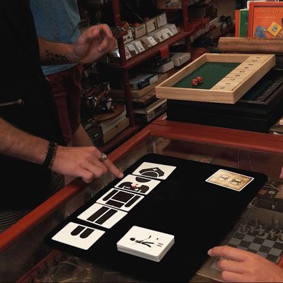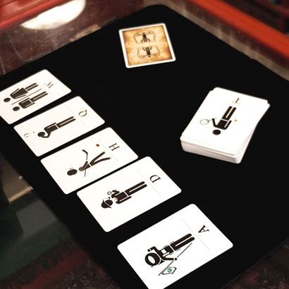 Le magicien présente un jeu de cartes un peu particulier car chaque carte représente un petit homme en pictogramme avec la première lettre qui décrit celui-ci (G pour Guitariste, C pour Clown, etc.). Vous pouvez présenter les cartes comme un jeu de société ou l'idée serait d’apprendre du vocabulaire ou encore des mots en anglais. Pour autant, ce simple jeu de société va vous permettre de réaliser un tour de magie incroyable. Le spectateur choisit librement une carte et la pose sur la table. Le magicien se laisse 5 chances pour retrouver la carte, mais échoue. Alors que tout semble raté, le magicien claque des doigts et retourne les 5 cartes qui forment alors le pictogramme du spectateur en grand !