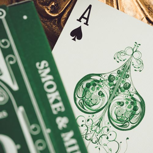 Pour fêter ça, nous proposons un tout petit lot de Smoke & Mirrors, qui en est maintenant à sa neuvième édition. La version 9 est un retour à la version 4 publiée en 2010 et présente un design de dos similaire, des figures minimalistes, des jokers personnalisés et un as de pique complexe, tout comme les originaux.