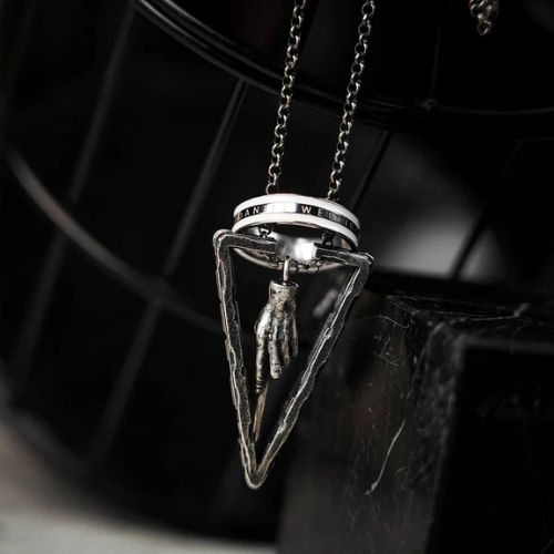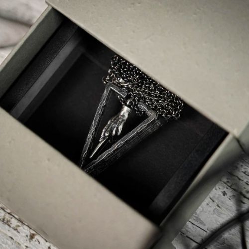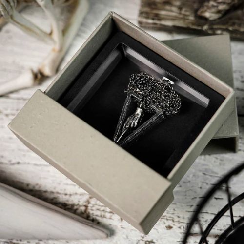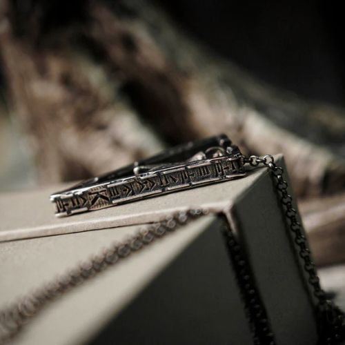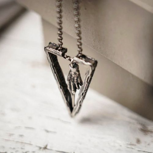 Le cadre est fabriqué en argent sterling 925 avec le même souci du détail et du travail artisanal que les vrais bijoux en argent. Le cadre extérieur est gravé de caractères cunéiformes de type babylonien et présente un aspect usé et vieilli qui rappelle la texture des ruines antiques. En outre, le roi des diamants est gravé dans le cadre pour une révélation ou une prédiction polyvalente.