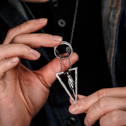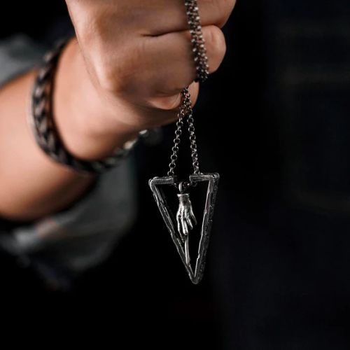 À l'origine, The Frame était rectangulaire et entourait un pendentif en forme de robot mécanique. Cependant, Terry s'est ensuite inspiré des Reliques de la Mort de Harry Potter et a modifié le cadre en triangle pour qu'il ressemble à la cape d'invisibilité. Le pendentif représente une baguette magique, un objet de sorcier par excellence, et la bague du spectateur représente le dernier artefact manquant des Reliques de la mort : la pierre de résurrection.