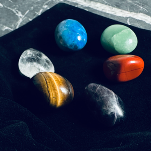 Vous lui montrez ensuite six belles pierres et une pochette et lui demandez de tout vérifier.