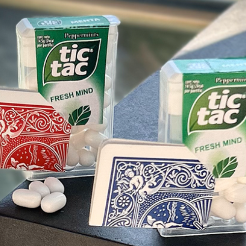 Chaque produit contient 2 gimmicks : 1 bleu et 1 rouge de la marque Bicycle. Il y a aussi des autocollants en forme de Tic Tac pour cacher l'aimant que vous devez placer à l'intérieur du Tic Tac.