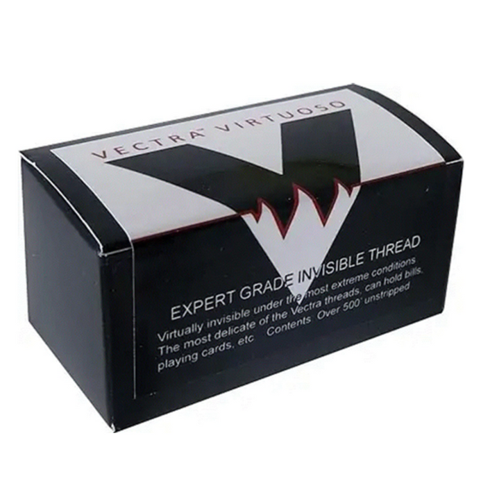 Vectra Virtuoso est le plus invisible des fils Vectra. C'est aussi le plus délicat, mais il est étonnamment solide. Il est capable de tenir une carte de crédit ou un permis de conduire avec facilité. Ce fil peut être utilisé dans une grande variété de conditions d'éclairage, à quelques centimètres du nez de votre public !