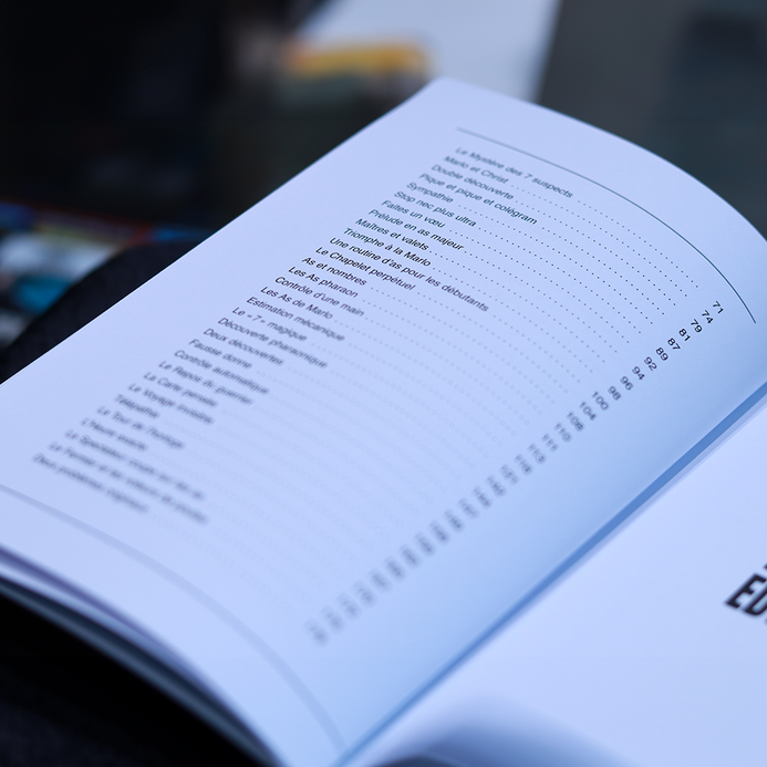 Ce que vous trouverez réuni pour la première fois dans cet ouvrage comblera tous les amoureux de la cartomagie, et renforcera leur conviction qu’un jeu de cartes est une intarissable source de surprises et d’émerveillements.