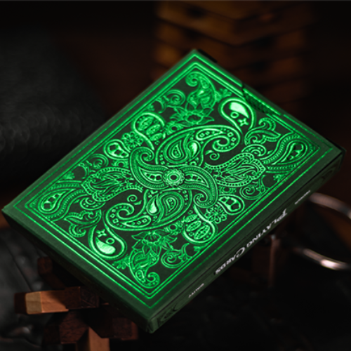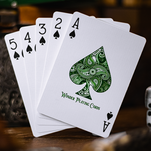 Voici Wonder Playing Cards - Emerald Wonder Standard Edition, un jeu de cartes polyvalent et élégant conçu pour enrichir vos tours de cartes et vos collections avec une sophistication discrète. Les bords des cartes conservent un style classique, non doré, permettant à la couleur vert émeraude intemporelle d'occuper le devant de la scène.