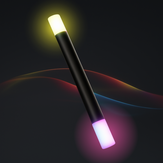 Cette baguette est vraiment magique ! Ses extrémités s'illumineront et de changeront de couleurs à votre commandement. 2 MATT+ (non inclus) peuvent y être insérés aux extrémités.