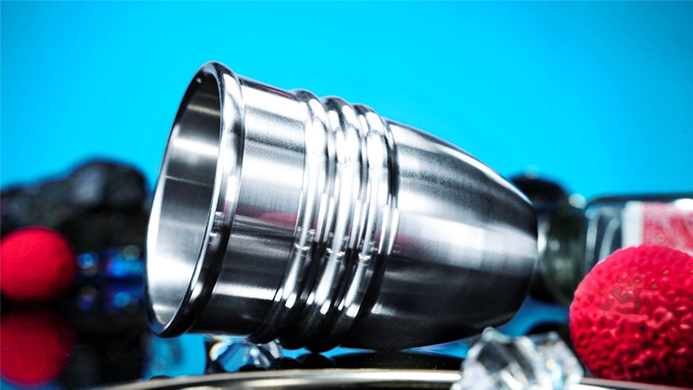 Vous réalisez un charmant tour de Chop Cup à l'aide d'une élégante tasse en acier inoxydable. Des balles disparaissent, apparaissent et sautent de manière impossible entre la tasse et votre poche. Tout semble familier et confortable... jusqu'à la fin.