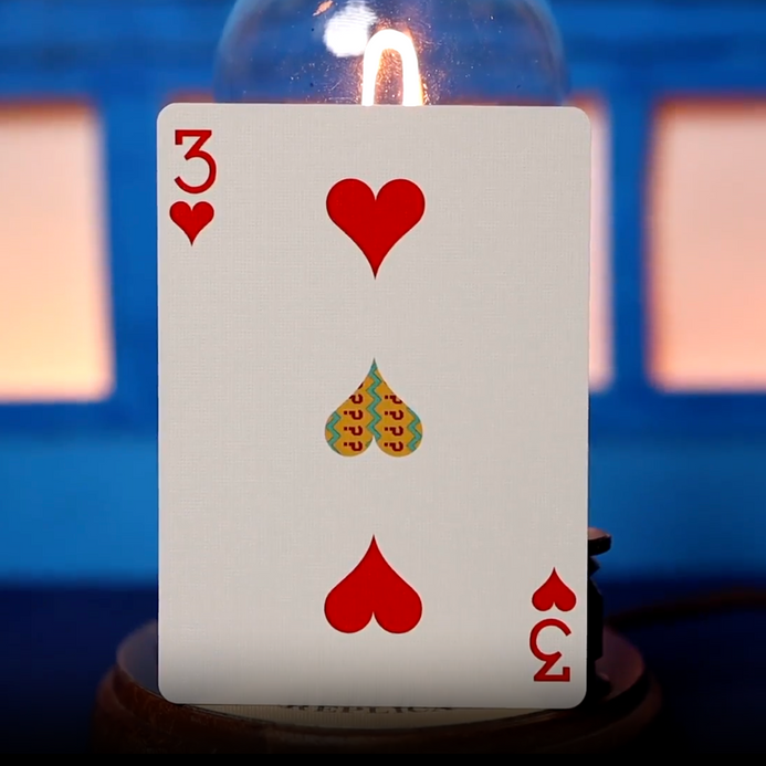 Avec des illustrations entièrement personnalisées, toutes les cartes numérales présentent des motifs différents sur les indices, et les figures proposent une interprétation ludique des designs classiques. Deux Jokers personnalisés sont inclus.