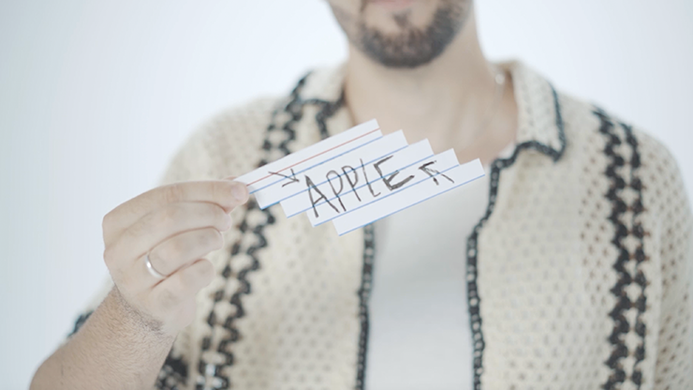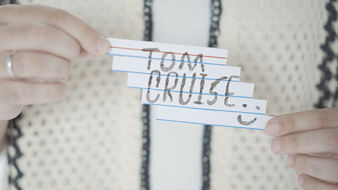 Une prédiction illisible écrite sur une fiche se transforme de manière impossible en le mot auquel pensait le spectateur, laissant derrière elle un objet impossible - une fiche fondue - que le spectateur peut garder en souvenir.