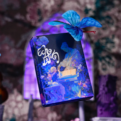 Lorsque vous le tenez et le tournez à contre-jour, la silhouette d'une personne âgée apparaît progressivement devant la jeune fille qui semble vide.