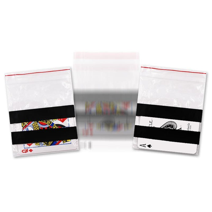 Transposition de cartes : deux cartes sont inspectées par votre public. L'une est placée dans le sac, l'autre reste sur la table. En un instant, elles changent de place ! Montrez le sac vide pour un effet supplémentaire.