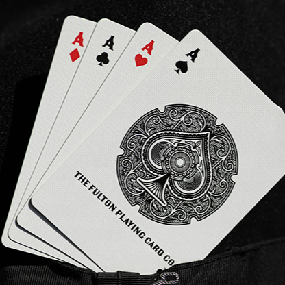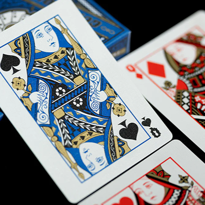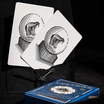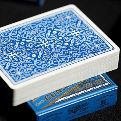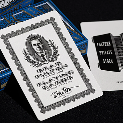 Illustré par Ethan Kowaleski pour mettre en valeur l'amour du genre western si cher au designer Brad Fulton. Imprimé dans le classique « Stud Blue », ce jeu de cartes sera sans aucun doute un favori des tables de poker pendant de nombreuses années. Aucune dépense n'a été épargnée pour créer un jeu de cartes intemporel.
