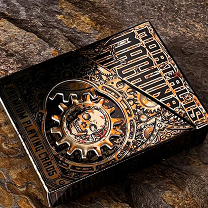 La série dorée se caractérise par une dorure bronze pour l'édition Iron et une dorure argent pour l'édition Cobalt. Inspiré par le choc entre l'homme et la machine, le design s'inspire largement de l'esthétique steampunk qui a alimenté l'ensemble du projet. Vous trouverez dans chaque carte de somptueuses couches d'élégance victorienne, des courbes baroques, des motifs gothiques et des touches de fantaisie sombre et de mysticisme.