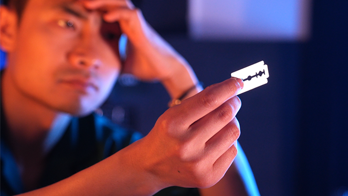 Puis vient l'impossible : il avale des lames de rasoir et un morceau de fil, invitant un spectateur à participer. Dans le final, il retire lentement le fil de sa bouche, désormais enfilé avec les lames qu'il a avalées quelques instants auparavant. Et suspendue à l'extrémité... se trouve la carte à jouer choisie et pliée par le spectateur.