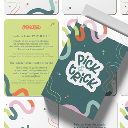 De plus, plusieurs cartes spéciales ont été créées en collaboration avec des magiciens de renom ! Markobi, Jonathan Renoux, les French Twins, Axel Adler, Rubi Ferez et Juan Colas ont tous créé une carte spécialement pour Pick and Trick !