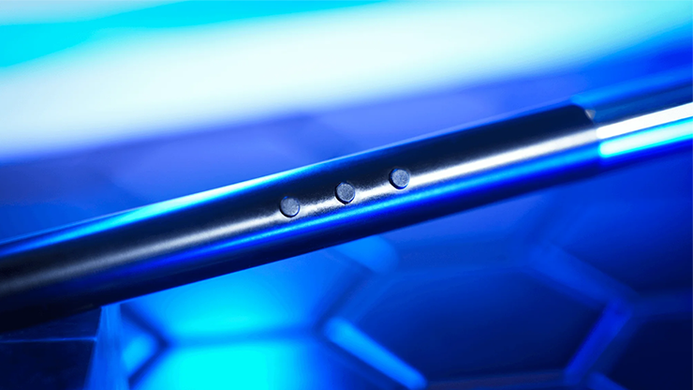 - Corps en acier inoxydable : confortable à tenir grâce à son design ergonomique et équilibré et à sa finition classique noir et argent, désormais améliorée avec de nouveaux effets lumineux.