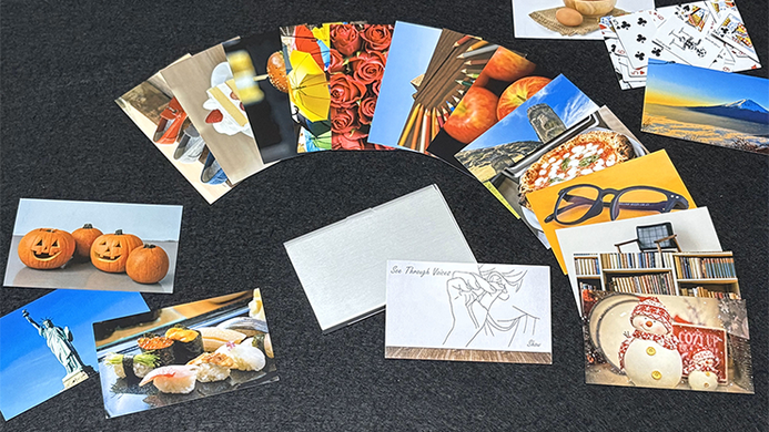Demandez au spectateur de mélanger environ 20 photos au format carte de visite. Ensuite, laissez-le choisir librement celle qu'il préfère.