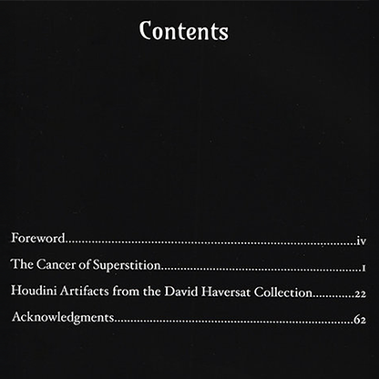 The Cancer of Superstition est un livre que Houdini écrivait au moment de sa mort avec C. M. Eddy Jr. et HP Lovecraft. Une semaine avant sa mort, le jour d'Halloween 1926, Houdini était en contact avec C.M. Eddy Jr. et se montrait enthousiaste à l'idée de terminer le projet. Cependant, alors que l'état de santé de Houdini empirait à l'hôpital Grace, sa femme Bess envoya un télégramme à Eddy et Lovecraft leur demandant d'arrêter The Cancer of Superstition.