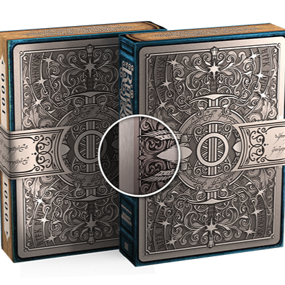 Avec l'édition Foiled, nous avons ajouté une luxueuse dorure argentée aux cartes. Ce jeu présente une dorure argentée sur les bords des cartes. L'édition Gilded Foiled est présentée dans un étui en forme de livre à chargement latéral avec un double sceau. Le numéro de l'édition réelle est différent de celui indiqué sur les rendus du produit.