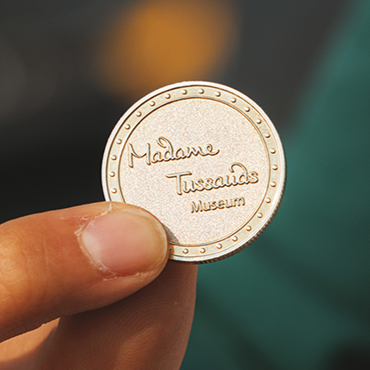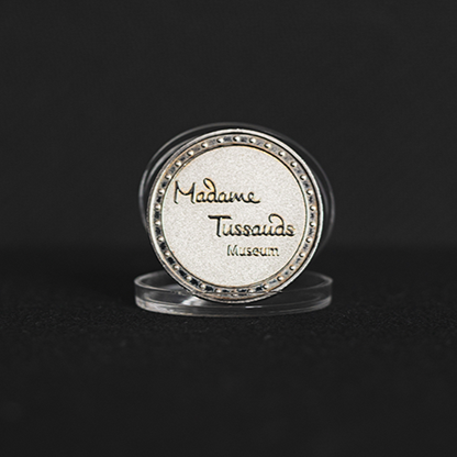 Une pièce souvenir du célèbre musée Madame Tussauds est montrée et examinée par le spectateur.