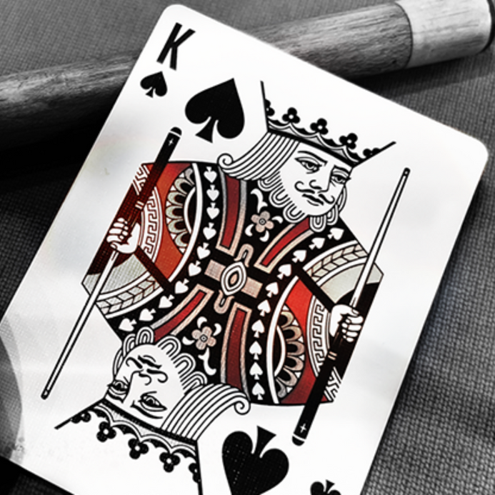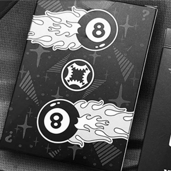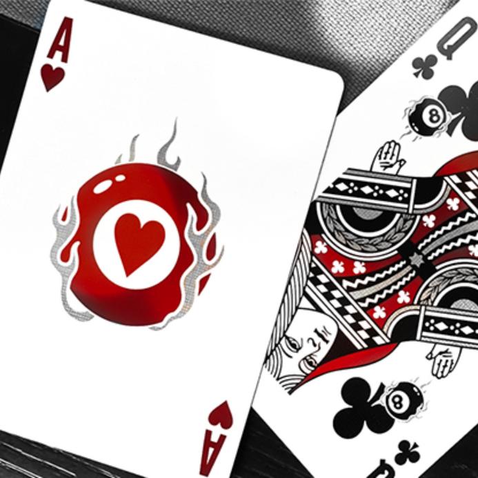 Comme à la roulette, au craps et aux machines à sous, les cartes à figure sont personnalisées avec des motifs de la boule 8, comme la boule 8 et les queues de billard. Illustrées pour se fondre dans l'artwork classique, avec des bordures dépouillées, elles complètent vraiment l'aspect du jeu tout en étant instantanément reconnaissables pour être utilisées dans vos routines de magie.
