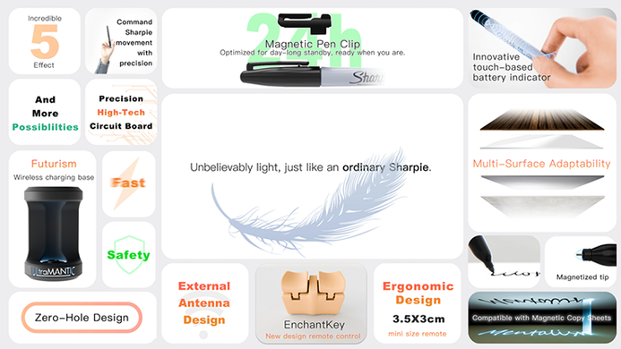 Imaginez qu'à tout moment, n'importe où, même à distance, vous puissiez contrôler un stylo par la pensée. Il pourrait rouler librement d'avant en arrière sur une surface dure et lisse, et s'arrêter à volonté dans n'importe quelle position. C'est incroyable, non ? Après des centaines de jours et de nuits d'efforts, nous sommes parvenus à une conception hautement intégrée, sans aucune ouverture dans un espace aussi étroit que celui du corps du stylo. Nous avons enfin réussi ! Il vous suffit d'emporter un Sharpie lorsque vous sortez, vous n'avez besoin de rien d'autre !