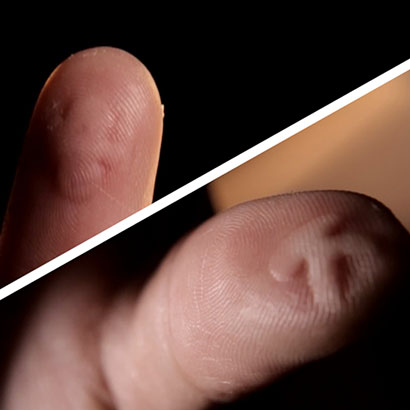 Vous expliquez que vous allez tenter une démonstration de l’un des tour de cartes les plus dangereux du monde. Vous présentez une grosse ampoule sur votre pouce, que vous avez en vous entrainant à réaliser l’effet quelques jours plus tôt. Quelqu’un est invité à choisir une carte et à se concentrer sur celle-ci pendant que vous allumez votre briquet. Vous pincez la flamme et votre ampoule semble mystérieusement se transformer en la carte choisie. La cloque de votre pouce prend la forme du symbole de la carte choisie et une seconde ampoule correspondant cette fois à la valeur de la carte se forme sur votre index !