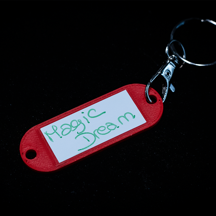 Le spectateur écrit ce qu'il veut sur un porte-clés : un numéro de chambre, une date de naissance, un prénom, une ville/pays, il peut même faire un petit dessin sans jamais le montrer. Après l’avoir effacé, vous serez en mesure de capturer cette pensée le temps d’un clin d’œil, à l’insu de votre audience, puis, de la révéler selon votre propre mise en scène.