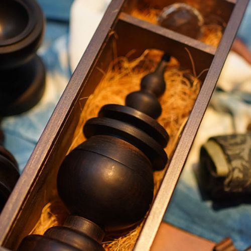 Une boîte de présentation en bois massif personnalisée exclusive avec un couvercle coulissant transparent stockera l'accessoire en toute sécurité et peut également être utilisée comme vitrine sur votre étagère ou votre coin magique.