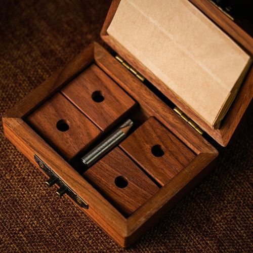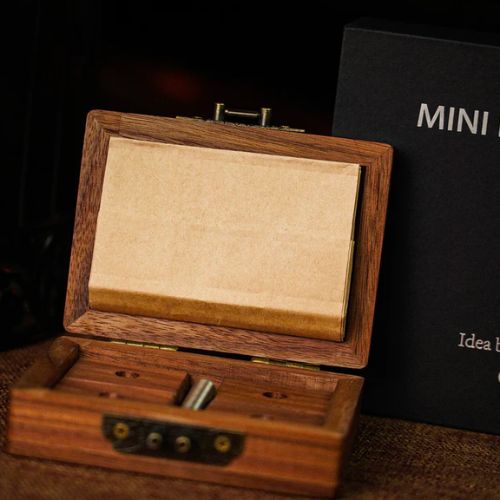 La Mini Roulette est présentée dans une boîte compacte mesurant seulement 110 * 93 * 35,7 mm et contient tous les éléments nécessaires à la réalisation de cette routine passionnante. Elle comprend des sacs en papier, quatre bases en bois et deux pointes.