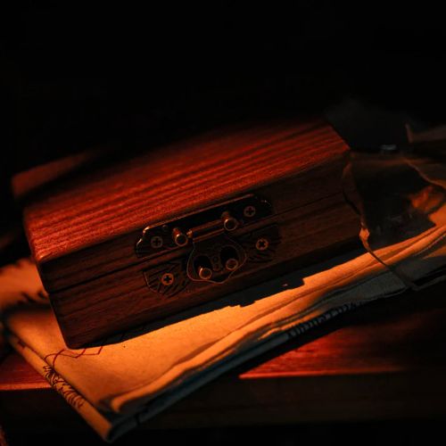 - Les articles ci-dessus sont contenus dans une boîte compacte en noyer noir d'Amérique du Nord qui peut être utilisée pour introduire les accessoires dans le spectacle.