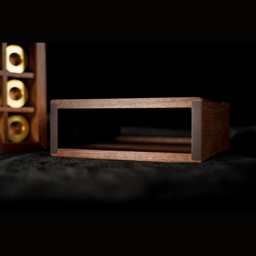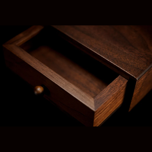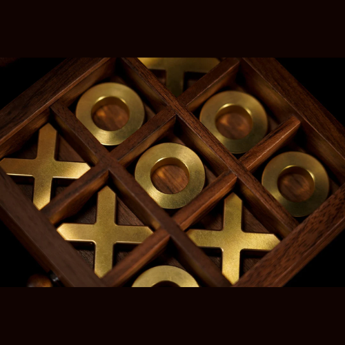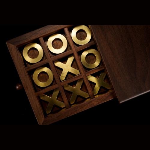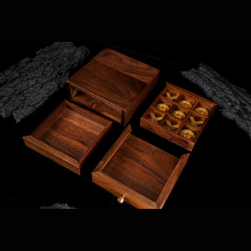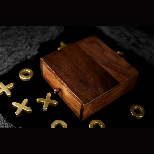 Pour enrichir la forme des tiroirs et faire en sorte qu'ils ne soient pas seulement des outils pratiques pour produire des objets, nous avons ajouté la prédiction d'un jeu de morpion classique pour captiver davantage le public. Les pièces en laiton massif en forme de cercle et de croix complètent le noyer, créant une fusion visuellement étonnante. Une prédiction cachée ajoute une couche supplémentaire d'intrigue.