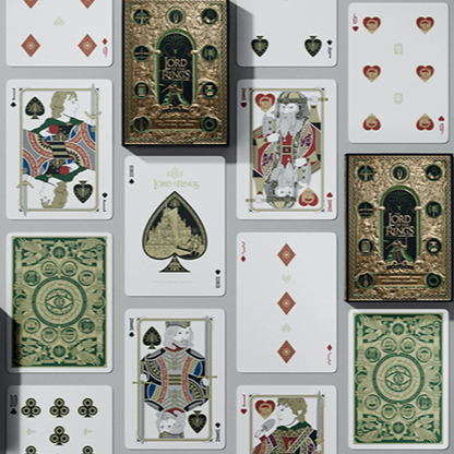 Ce coffret premium comprend quatre jeux de cartes : deux éditions standard et deux éditions spéciales du Seigneur des Anneaux, avec une feuille d'or scintillante au dos de chaque carte. Le coffret est sécurisé par un boîtier magnétique - avec une carte de la Terre du Milieu à l'intérieur !