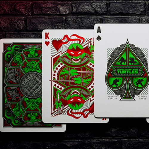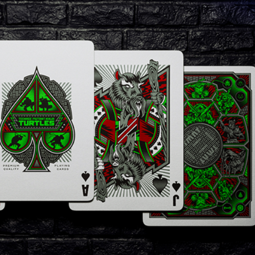 Les cartes ont une carapace qui leur est propre - des feuilles d'aluminium vertes, rouges et argentées sur du papier noir de première qualité en font un must pour tout fan des TMNT !