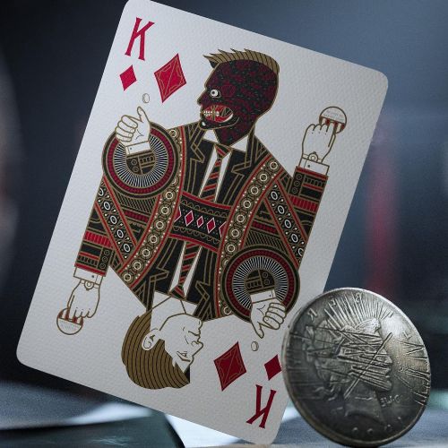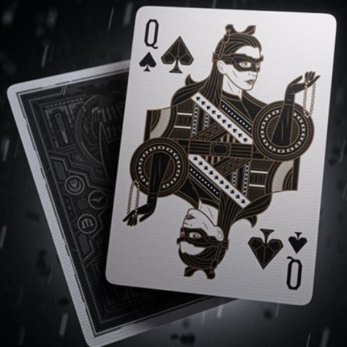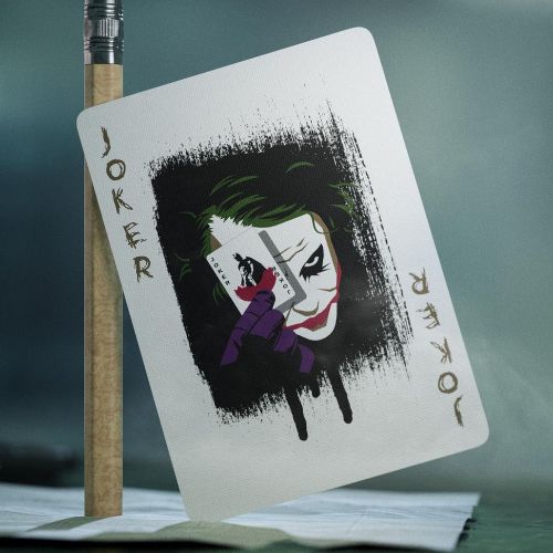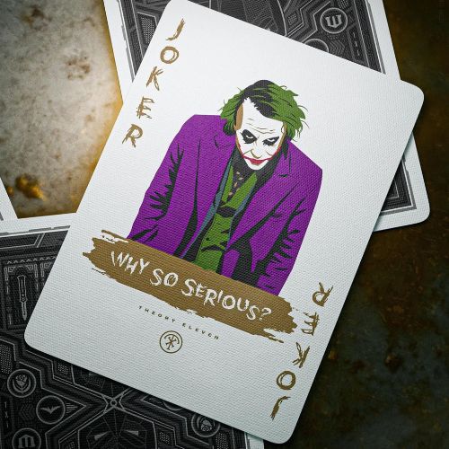 Chaque aspect des cartes à jouer de la trilogie The Dark Knight a été réalisé à partir de zéro : y compris les combinaisons personnalisées, les designs des personnages, les As, le design du dos, et tout ce qu'il y a entre les deux ! Si vous regardez bien, vous remarquerez plusieurs easter eggs qui satisferont même le plus grand des fans.
