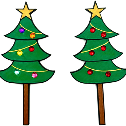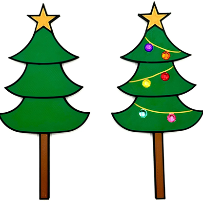 Vous montrez à votre public un simple sapin de Noël, sans fioritures à l'exception d'une étoile dorée au sommet. Avec un peu de magie (ou peut-être simplement l'esprit des fêtes), le même sapin se retrouve soudainement décoré d'un ruban doré et de six ornements colorés en forme de gemmes !